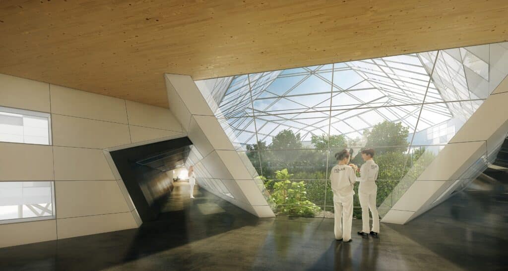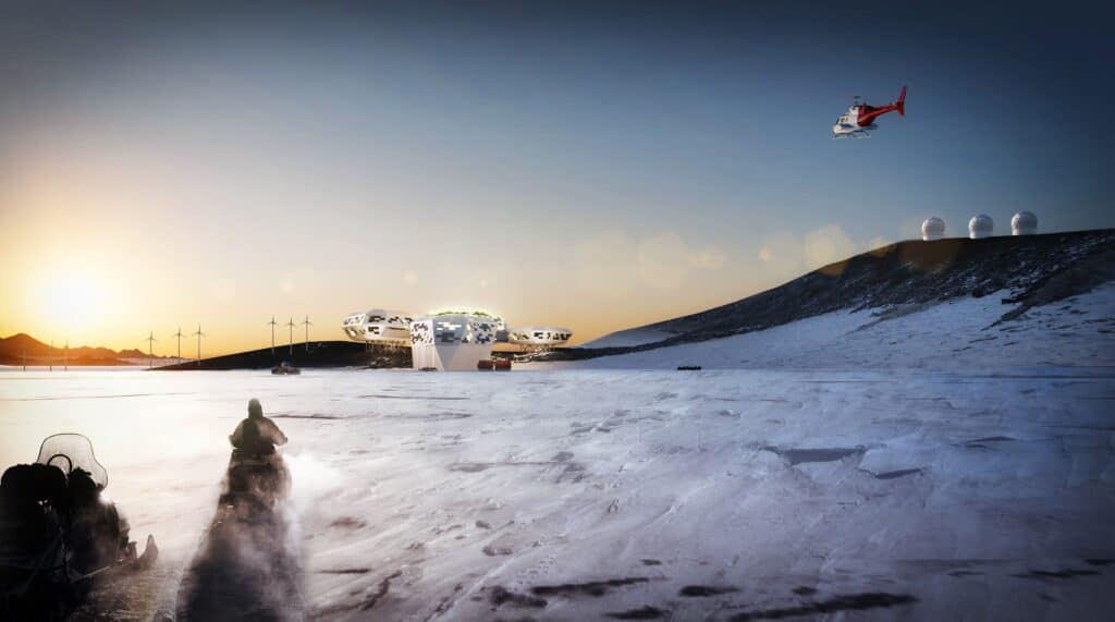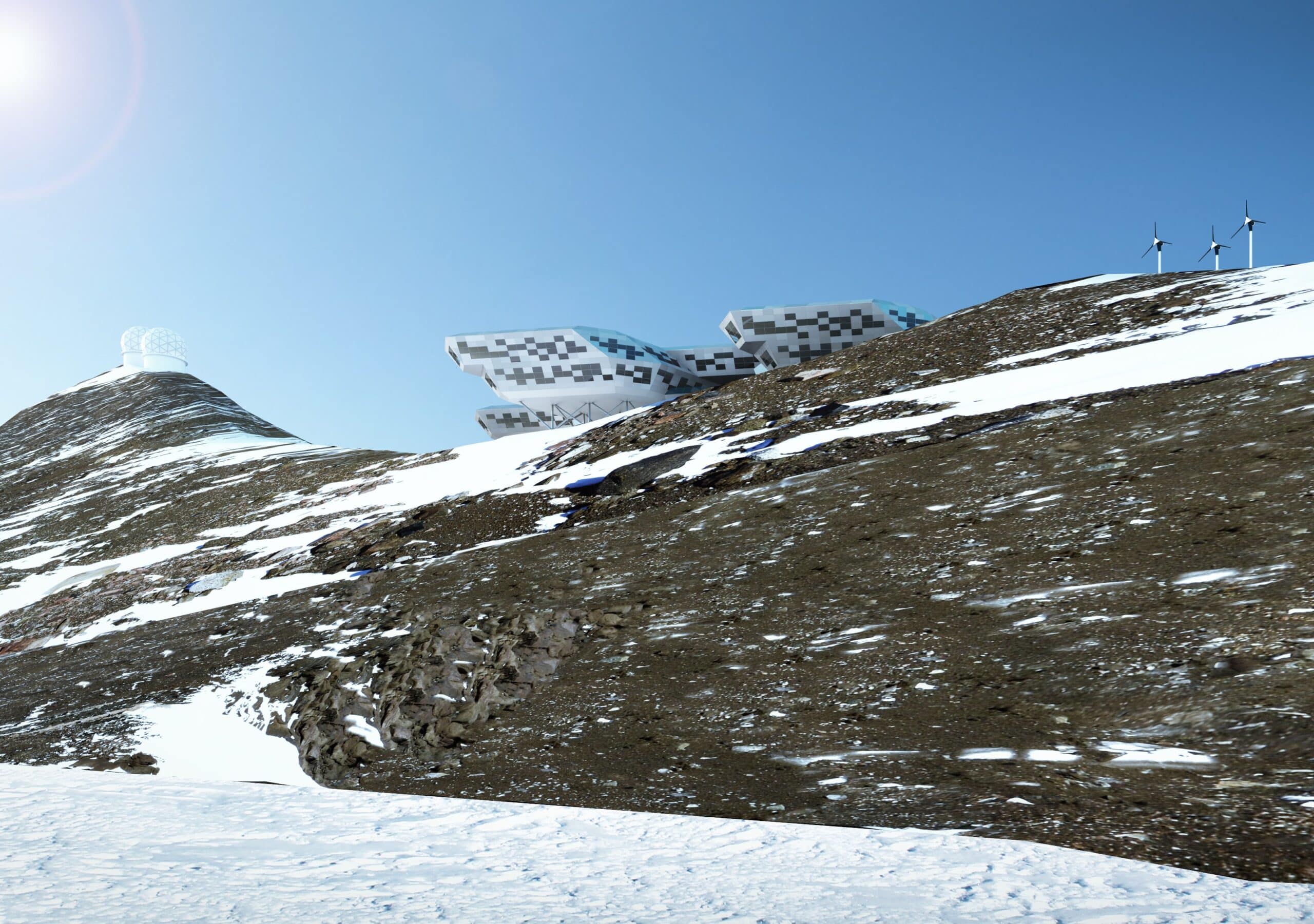 Ce projet, imaginé à la demande de l’International Polar Foundation, proposait la création d’une station polaire innovante réunissant un centre de recherche, un centre d’observation environnementale, un biodôme et un espace d’hébergement.
