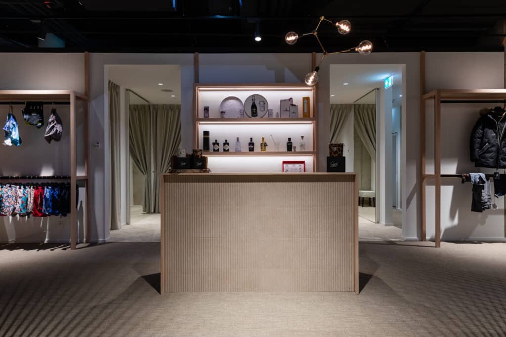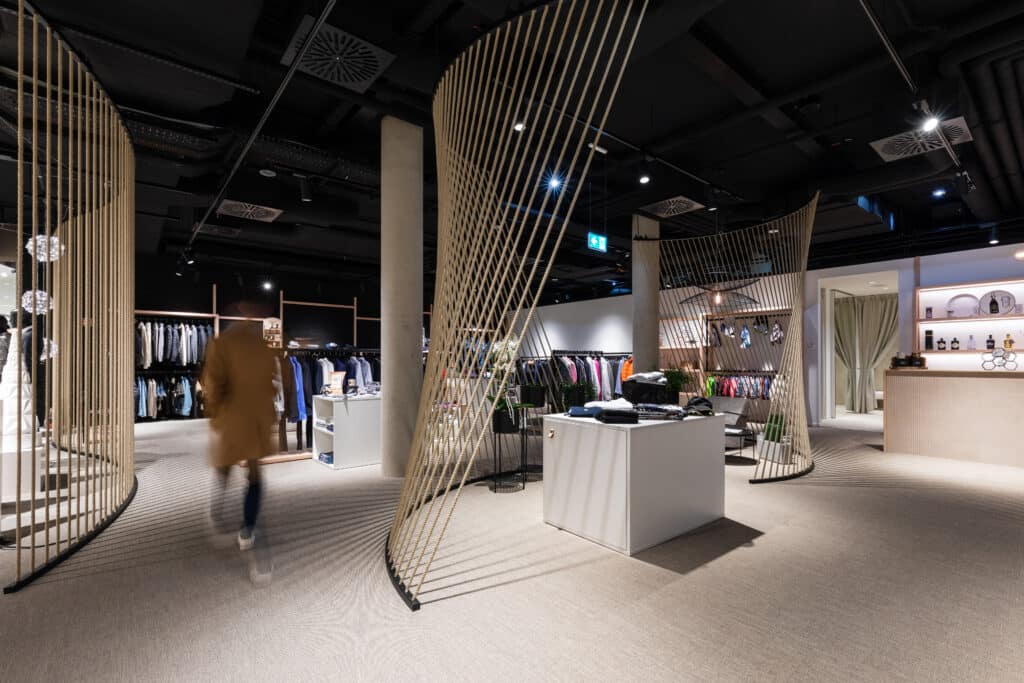 Dans cette boutique située au premier étage du City Concorde de Bertrange, dédiée équitablement aux hommes et aux femmes sur une surface de 650m², l’accent est porté sur le mélange des matières naturelles, dégageant ainsi une atmosphère chaleureuse.