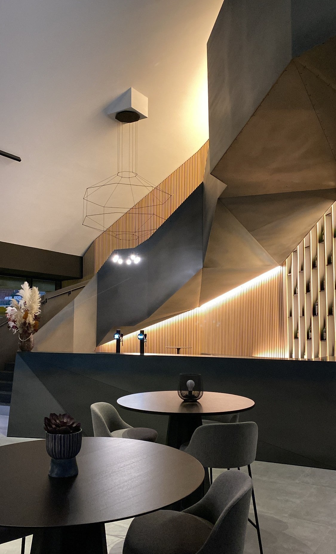Une sélection de quelques matériaux emblématiques aux teintes sombres comme le bois brûlé, le charbon, ou encore l’acier contrastent avec des matières nobles telles que le chaîne naturel, le cuir, des tissus clairs ou un marbre grenat, clin d’œil à la couleur du FC Metz.