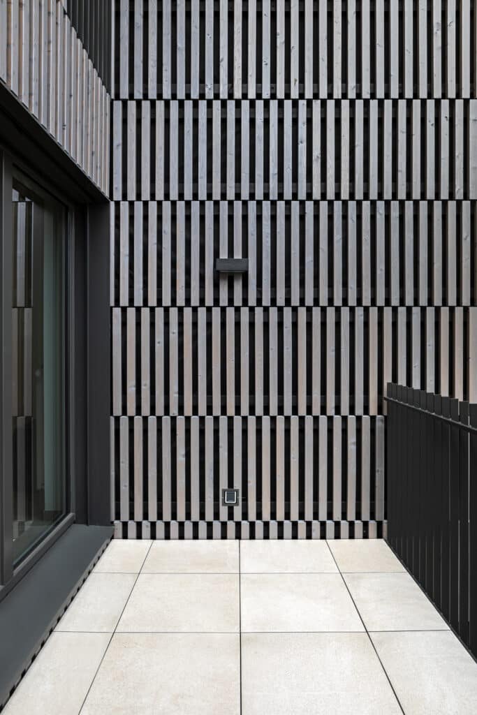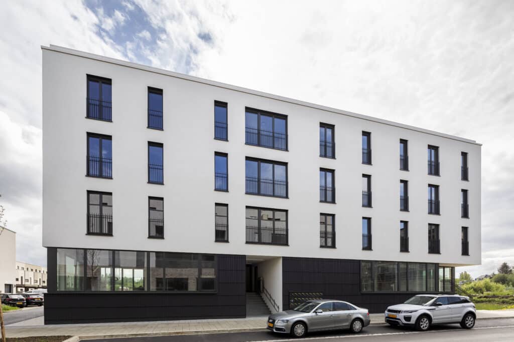 Cet ensemble résidentiel est un immeuble mixte comportant 24 appartements de 1 à 3 chambres de 50 à 105 m² se répartissant sur les quatre niveaux, et 2 locaux destinés aux professions libérales à front de rue au niveau du rez-de-chaussée. Chaque étage comprend une buanderie et un local poussette pour une utilisation quotidienne plus confortable des résidents. Un local « vélos » est également accessible près de l’entrée de la résidence. L’immeuble est doté d’un sous-sol semi-enterré qui comprend les emplacements de parking, les caves et les locaux techniques.