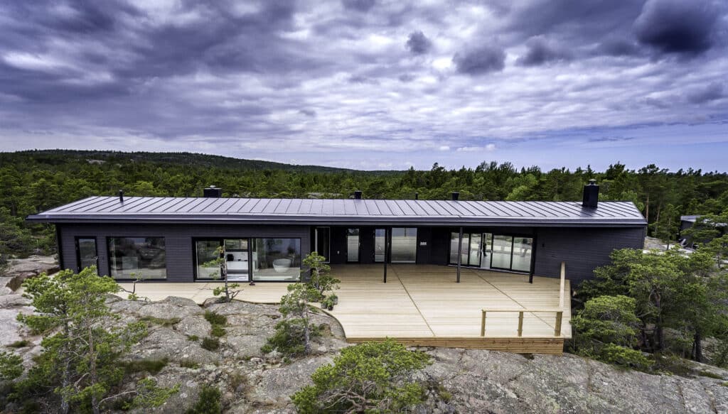 Située dans le cadre naturel saisissant de Havsvidden, sur les îles Åland en Finlande, cette maison unifamiliale de 355 m² a été imaginée comme une résidence de vacances parfaitement intégrée à son environnement. Édifiée au cœur d’un paysage rocheux emblématique de l’archipel, elle se fond discrètement dans le relief, prolongeant les lignes du terrain et établissant une continuité organique entre architecture et nature.