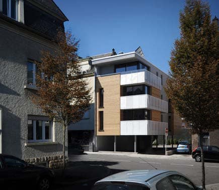 Le projet consiste en l’insertion d’un immeuble résidentiel au cœur de Bonnevoie, pensé pour s’intégrer harmonieusement dans le tissu urbain existant. Construit en bois, le bâtiment allie durabilité et modernité, proposant une architecture contemporaine respectueuse de son environnement. Cette intervention vise à renforcer la mixité du quartier tout en valorisant une approche durable de la construction urbaine.