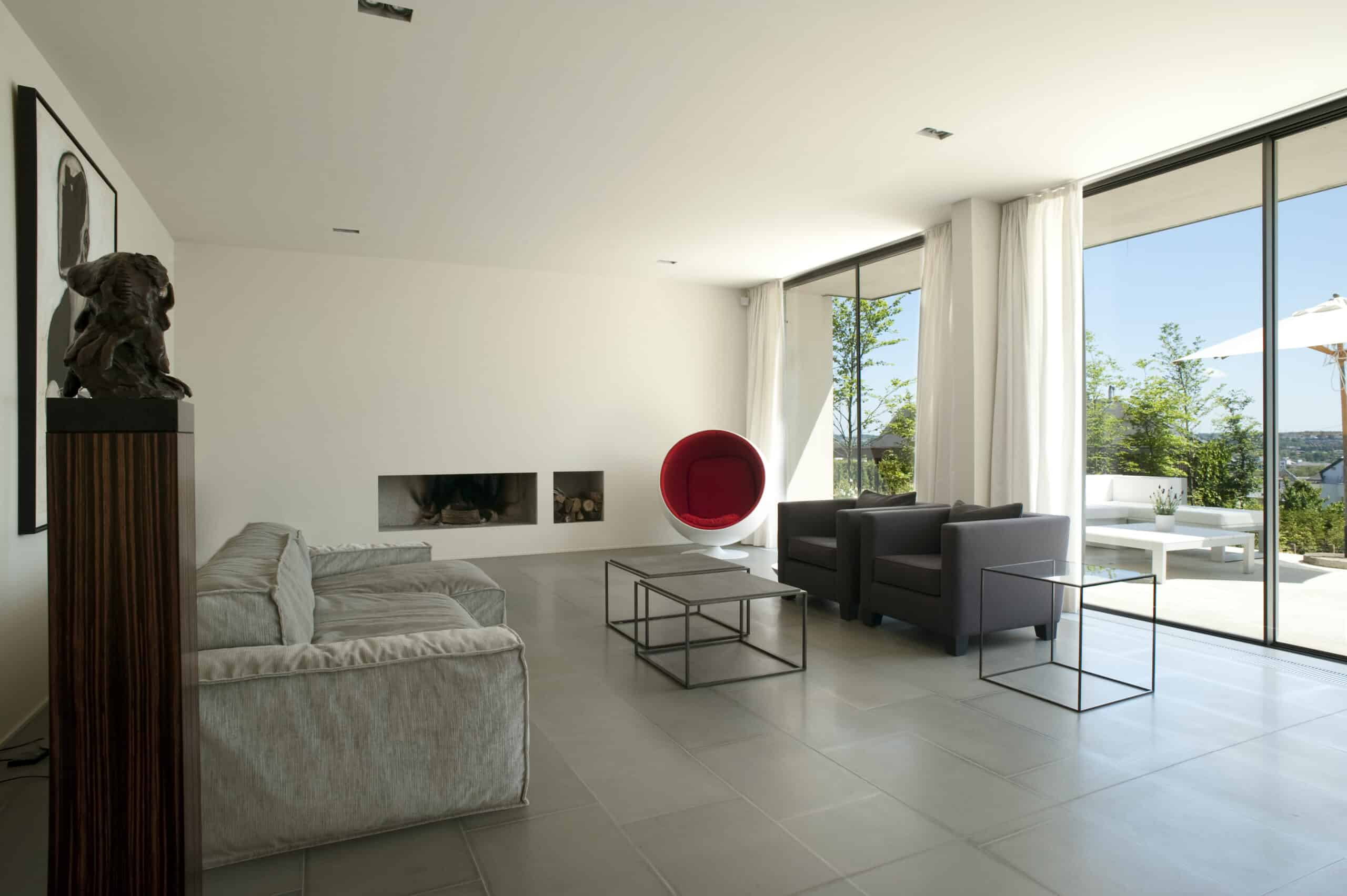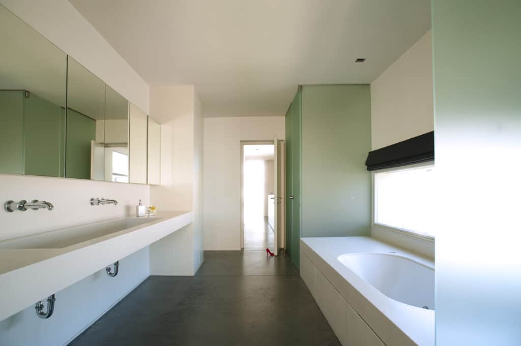 Dans ce contexte urbain, le parti pris a été de créer une peau opaque sur la façade nord en front de rue et les façades latérales ; seules quelques ouvertures laissent pénétrer la lumière dans les espaces secondaires. Les espaces de vie s’ouvrent largement par des balcons et terrasses orientés au sud, protégés par la prolongation des façades latérales qui jouent le rôle d’ « œillères » et renforcent le caractère privé du jardin.