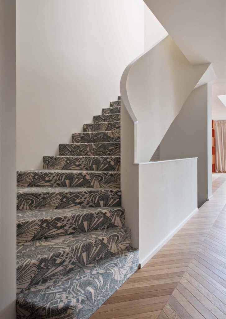 L’intervention prévoyait la démolition complète de l’intérieur du bâtiment et l’ajout d’une extension côté jardin. Celle-ci comprend de grandes ouvertures vitrées pour maximiser la lumière naturelle. Une terrasse surélevée a été créée dans le prolongement du séjour, avec pare-vue et accès direct au jardin. L’escalier intérieur a été repositionné à son emplacement d’origine, et l’accès au garage a été facilité par la modification partielle des murets en façade.