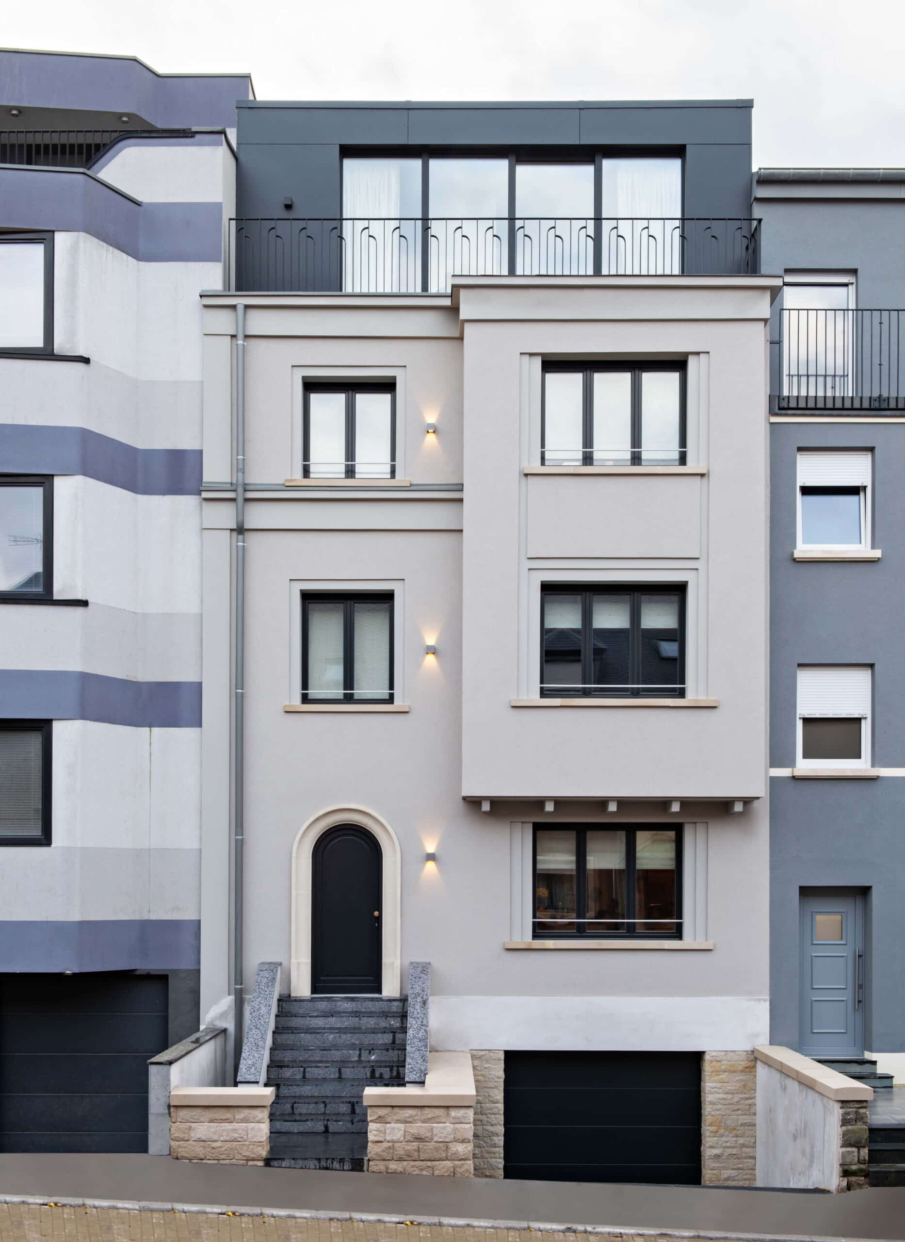 Le projet de base concerne la rénovation et l’extension d’une maison unifamiliale située à Luxembourg, dans un secteur protégé. La maison actuelle, mitoyenne des deux côtés, devait être conservée dans son gabarit général, mais profondément transformée pour améliorer son confort et sa fonctionnalité. La façade sur rue a dû être démolie et reconstruite à l’identique, selon les services de la Ville de Luxembourg.