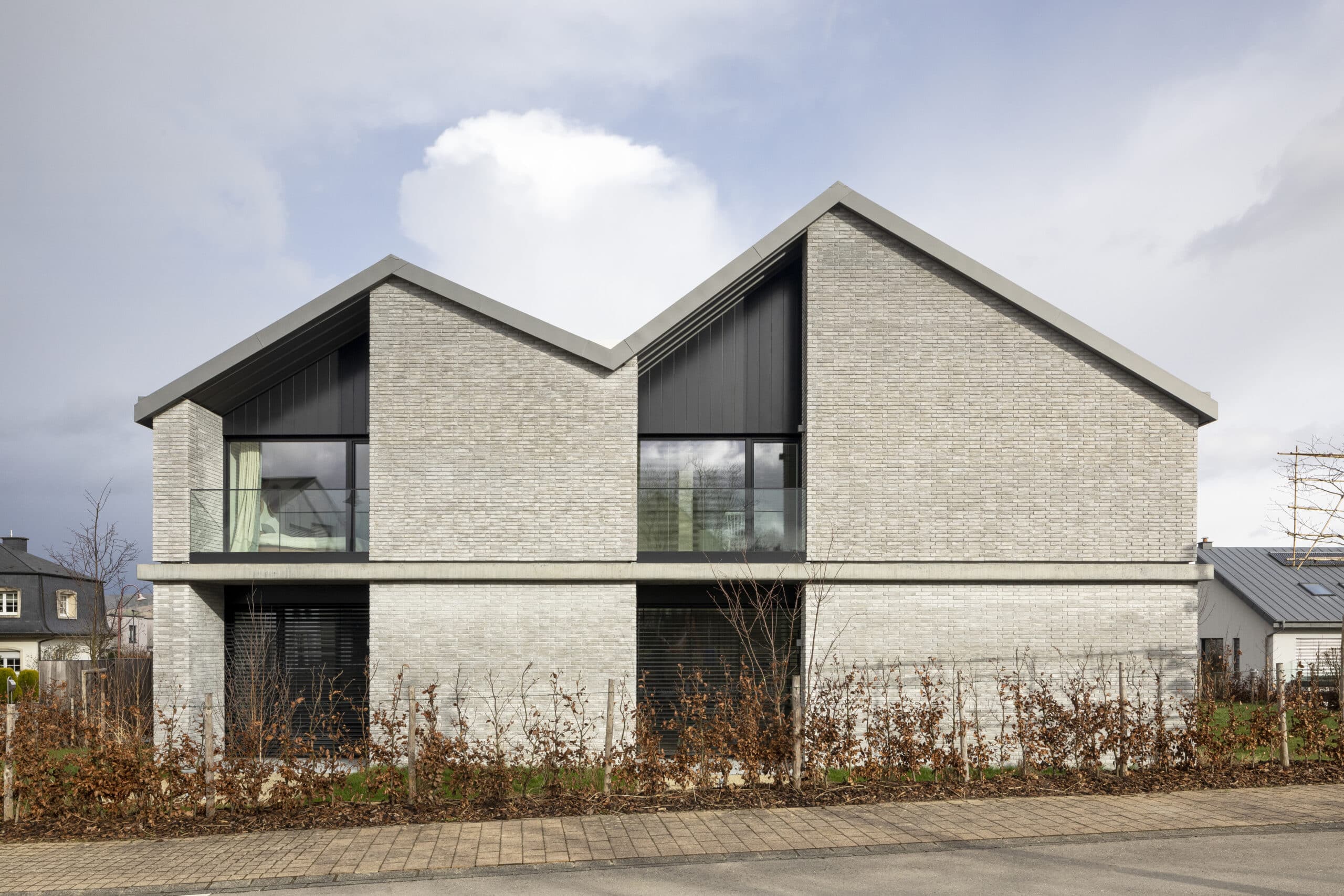 Compte tenu des dimensions importantes de ce plan quasi carré, et afin de respecter les pentes de toiture imposées tout en limitant la hauteur du faîtage, le projet adopte une solution de toiture à double pan traditionnel, disposé en configuration jumelée.