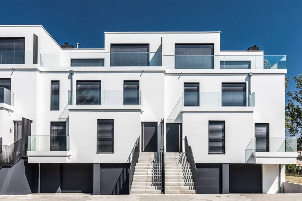 Chaque unité abrite deux appartements bénéficiant de généreux espaces extérieurs, tels que des jardins et des terrasses, favorisant une relation étroite avec l’environnement naturel.