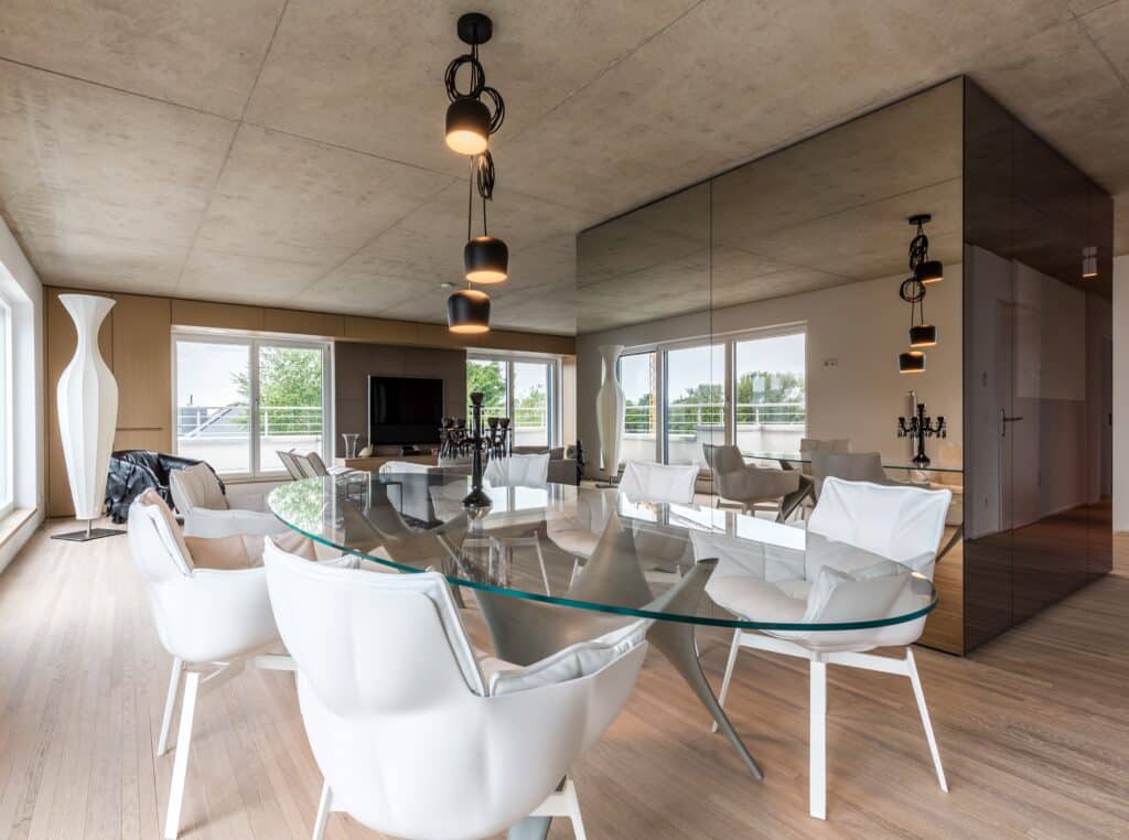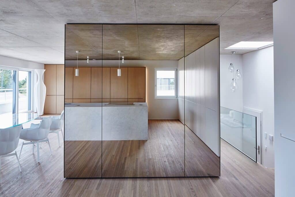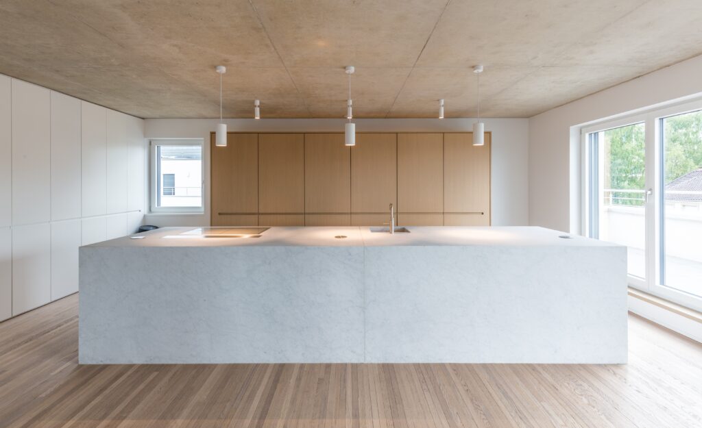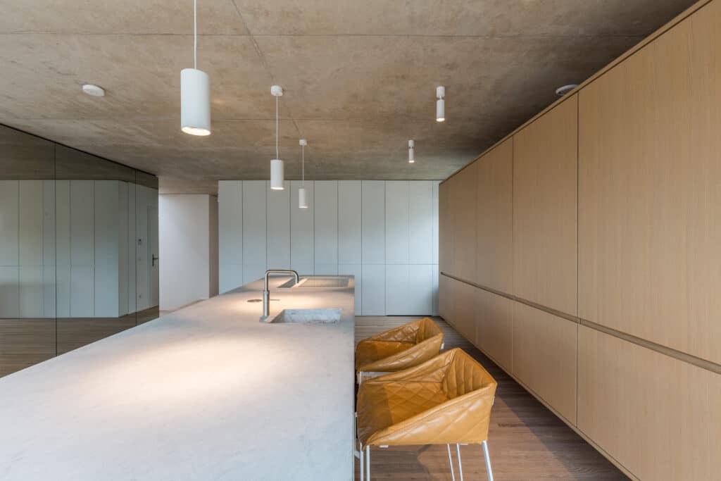 Le projet consiste en l’aménagement d’un appartement au dernier étage d’un bâtiment résidentiel au Kirchberg à Luxembourg. L’organisation interne de l’appartement s’implante selon le contexte et les vues extérieures.