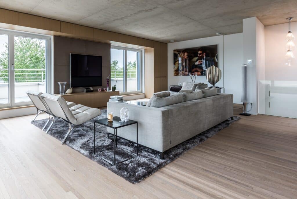 Les espaces tel que séjours, salle à manger et cuisine ont été aménagés de façon à être le plus ouverts et communiquant possible. Ceci afin de laisser un maximum de flexibilité au plan.