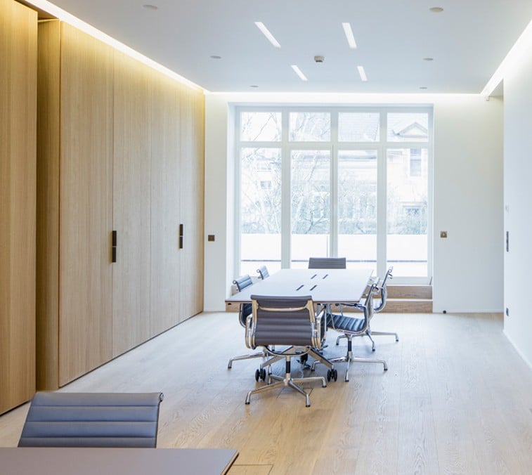 Ce projet consiste en la rénovation d’une maison historique en aménagement de bureaux pour le groupe Wendel. Un soin particulier a été apporté à l’équilibre entre patrimoine et modernité. L’aménagement intérieur, résolument contemporain, intègre une menuiserie sur mesure et un mobilier soigneusement sélectionné pour son style épuré.