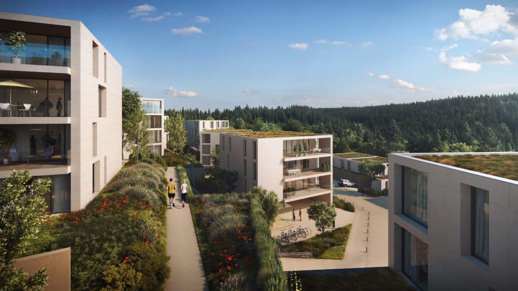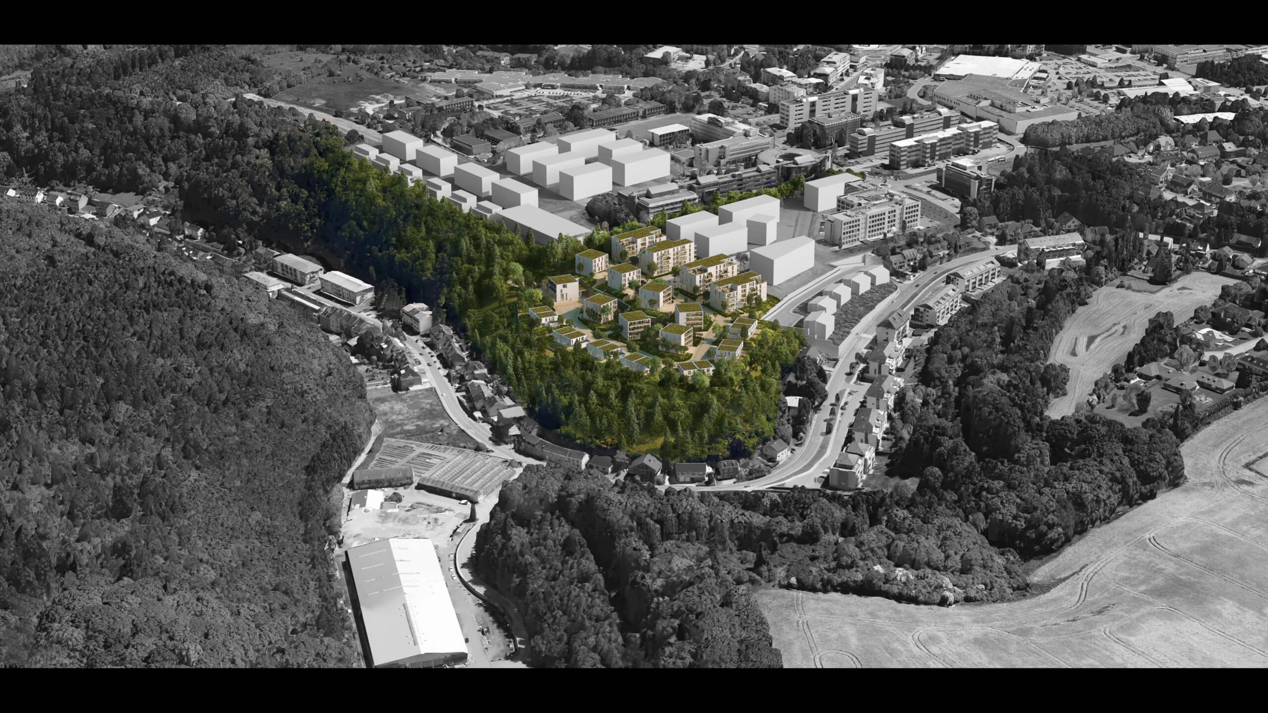 Concours d’urbanisme pour l’élaboration d’un Masterplan à Strassen. Le projet vise à valoriser la situation en périphérie urbaine du site en développant un quartier résidentiel autonome, situé à proximité immédiate d’une zone industrielle, génératrice d’emplois et de dynamisme économique.